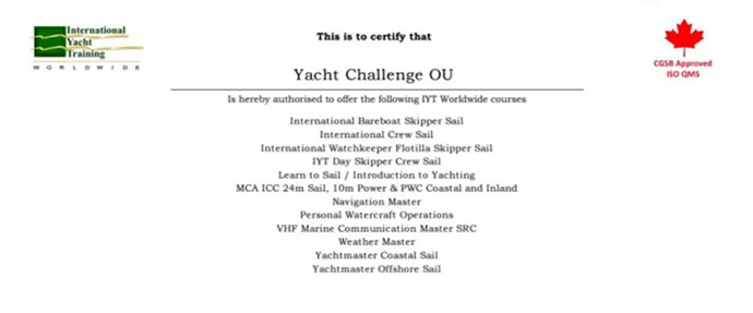 Инструктор IYT до уровня Yachtmaster Offshore Sail & Power. Сертификат STCW.
